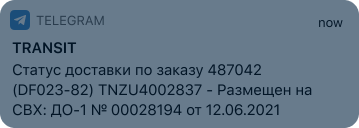 Настраивайте оповещения с актуальной информацией о событиях, происходящих в процессе перевозки по любому из ваших заказов.